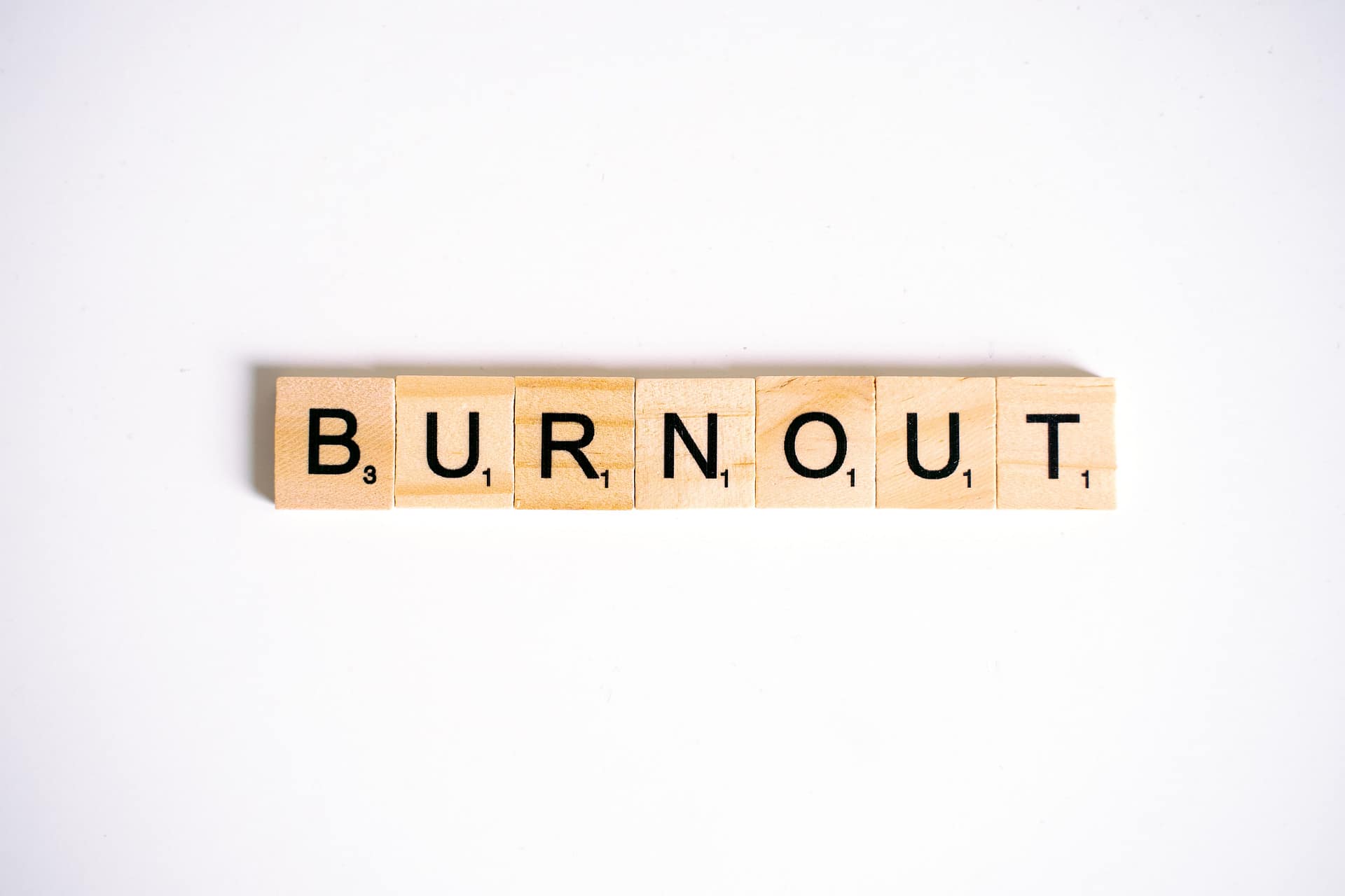 Picture of burnout by Anna Tarazevich: https://www.pexels.com/photo/close-up-shot-of-scrabble-tiles-on-a-white-surface-6230965/